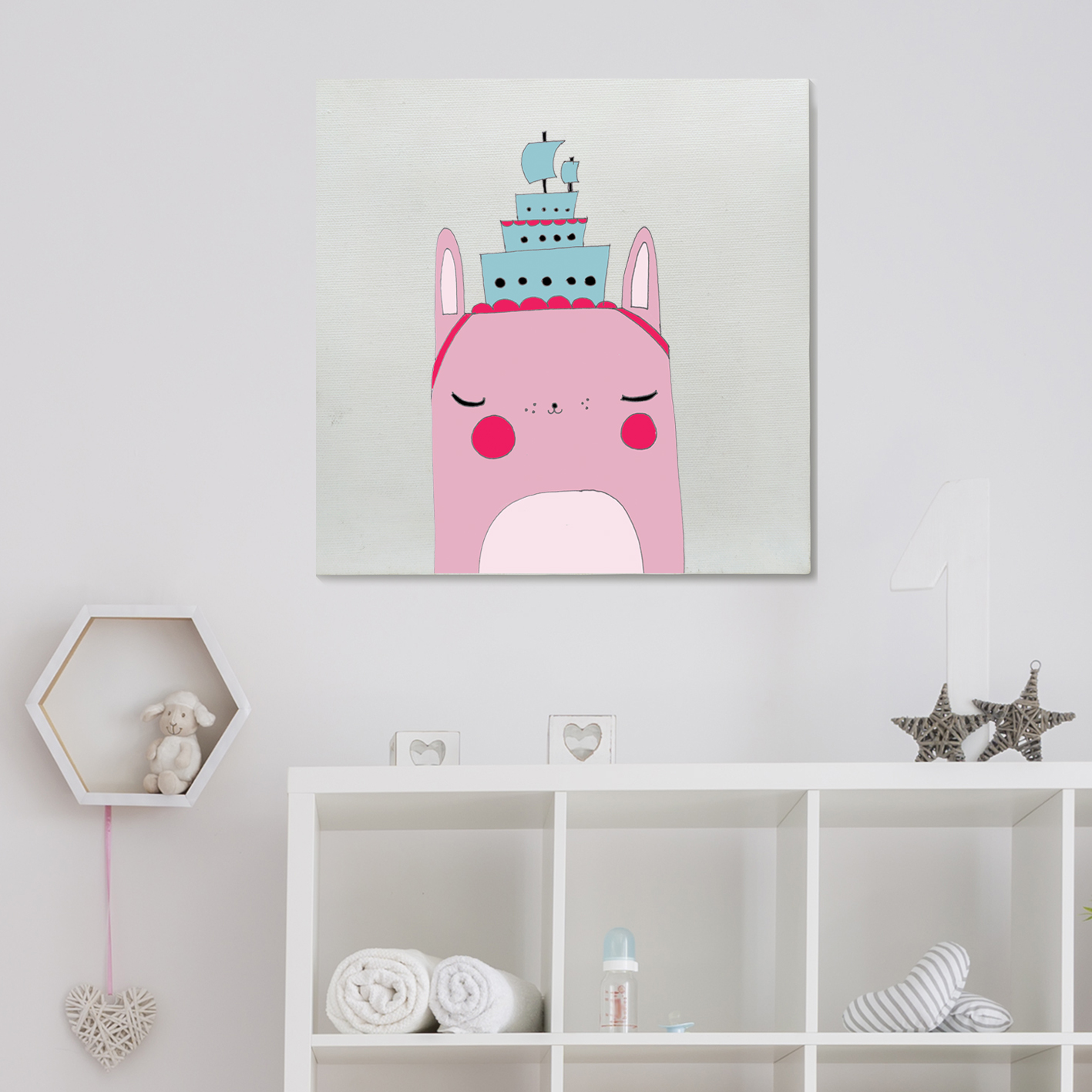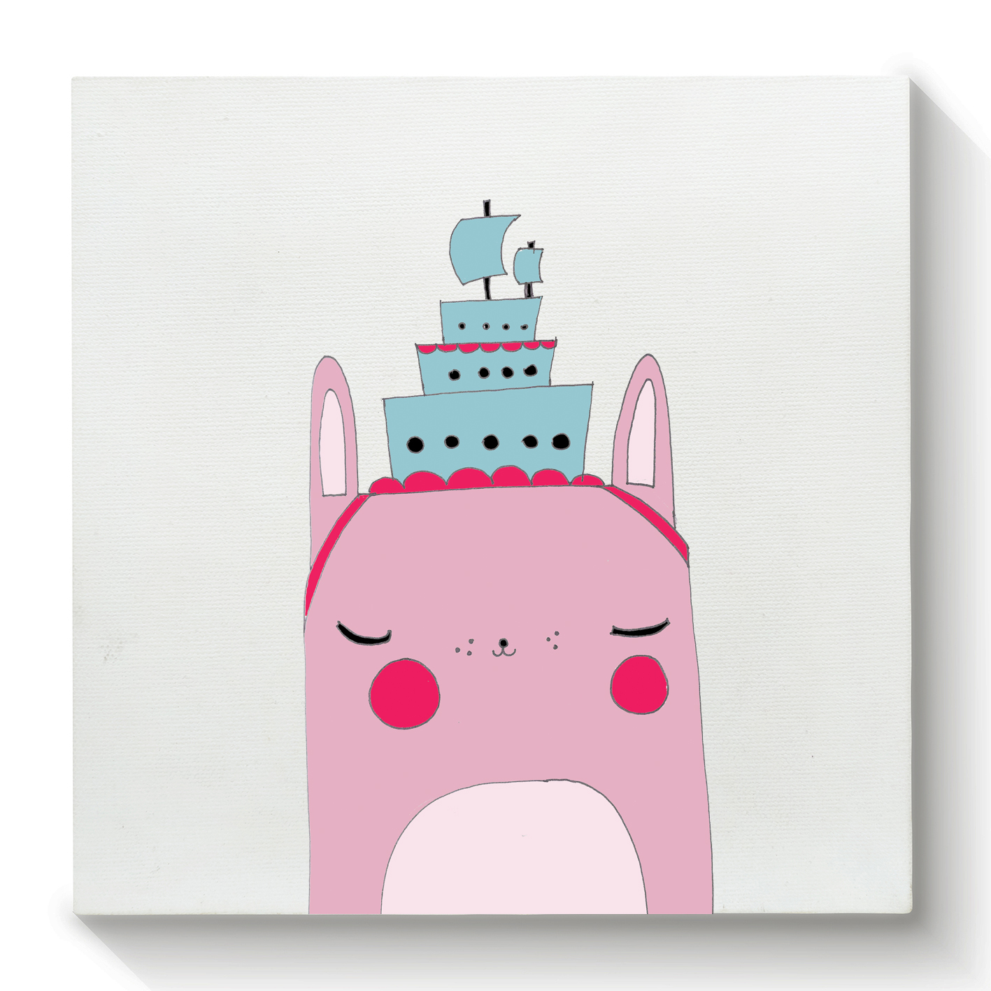 Funny Blue Pink Rabbit Sailor Hat Sea Boat Canvas Prints