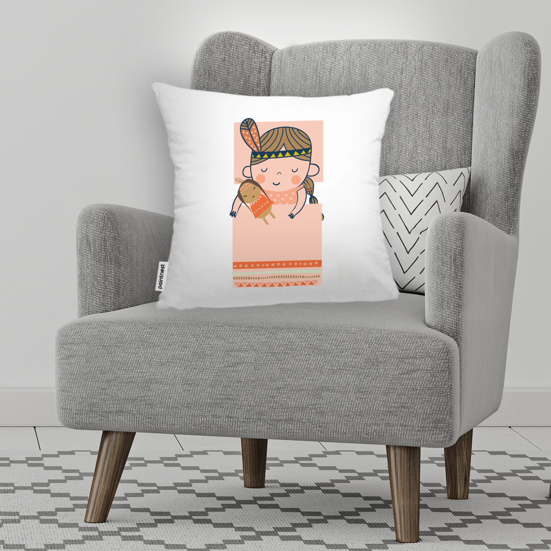 Native Americans Sleeping Girl Pink Blanket Throw Pillows